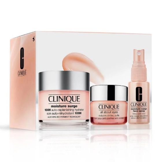 مجموعة كلينيك الحصرية للسفر للعناية بالبشرة 3 في 1 – ترطيب كامل وعناية بالعينين متوفرة على