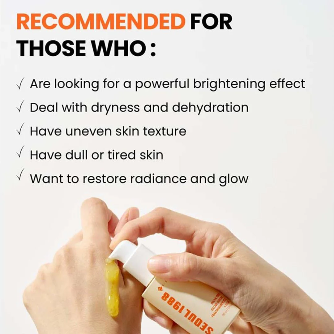 سيروم K-Secret Seoul 1988 Glow Serum هو سيروم خفيف الوزن للوجه، مُصمم بتركيبة غنية بـ 15% من النياسيناميد ومستخلص اليوجا، ليساعد على تحسين مظهر لون البشرة ونضارتها. صُمم هذا السيروم خصيصاً للاستخدام اليومي، فهو يُعزز إشراقة البشرة ويمنحها مظهراً أكثر نعومة وتجانساً.