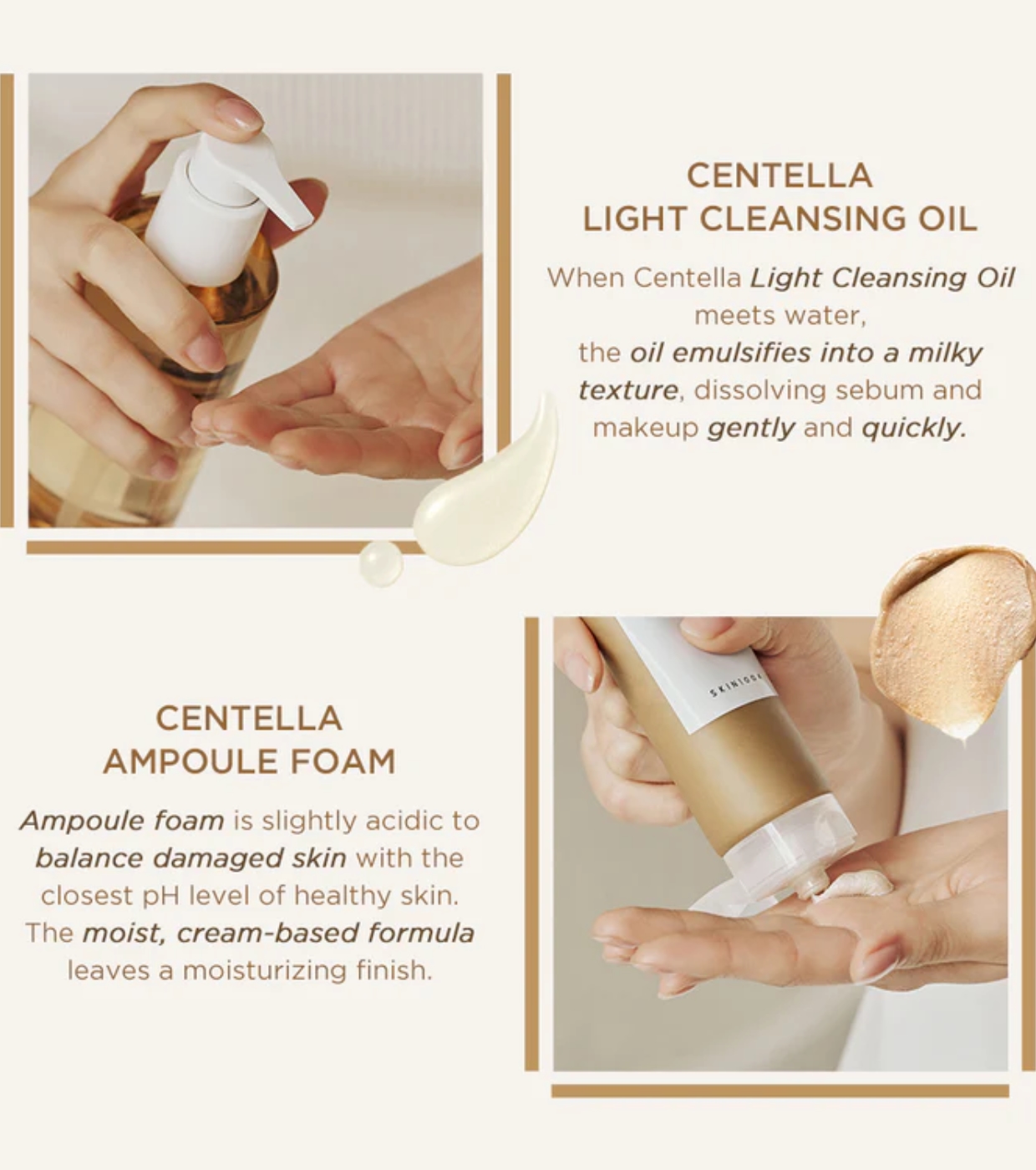 نظفي بشرتكِ بانتعاش باستخدام تركيبة زيت التنظيف الخفيف سنتيلا + رغوة أمبولات سنتيلا اللطيفة وغير المهيجة.